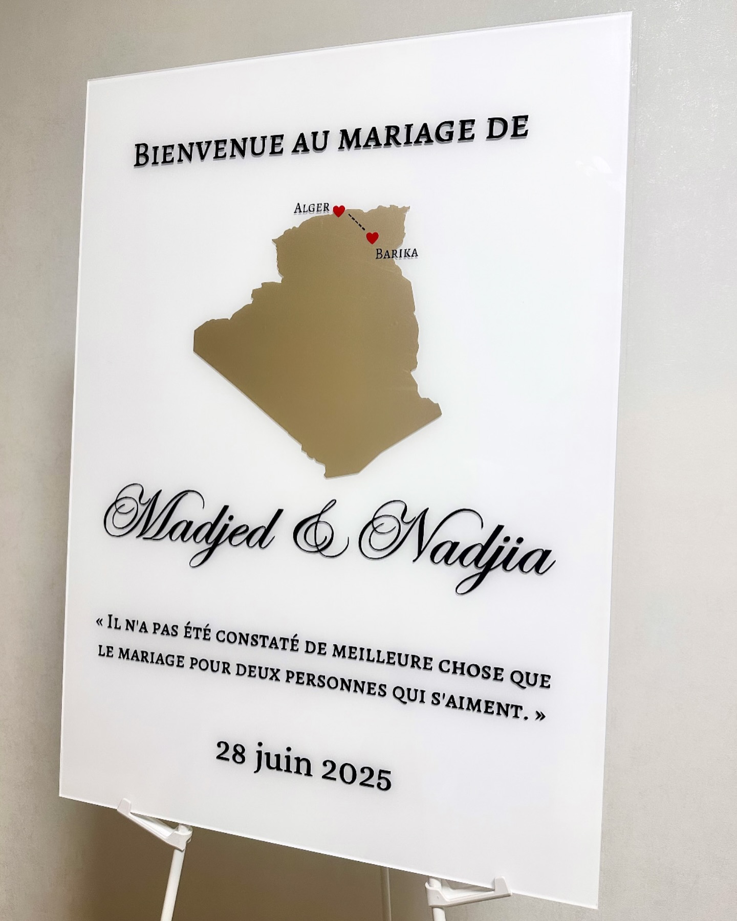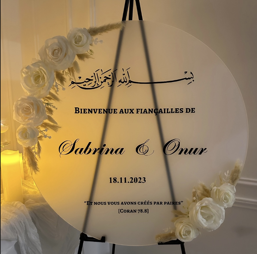 Spécialisés dans la création de panneaux personnalisés pour mariages, baptêmes, anniversaires et toutes vos occasions spéciales, nous transformons vos idées en pièces uniques, élégantes et pleines d’émotion.
